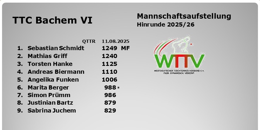 6.Herren – 3. Bezirksklasse 3 – Saison 2025/2026